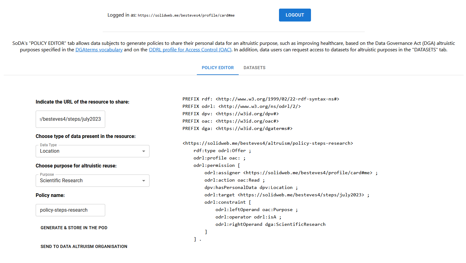 personal data stored in Solid Pods. OAC uses